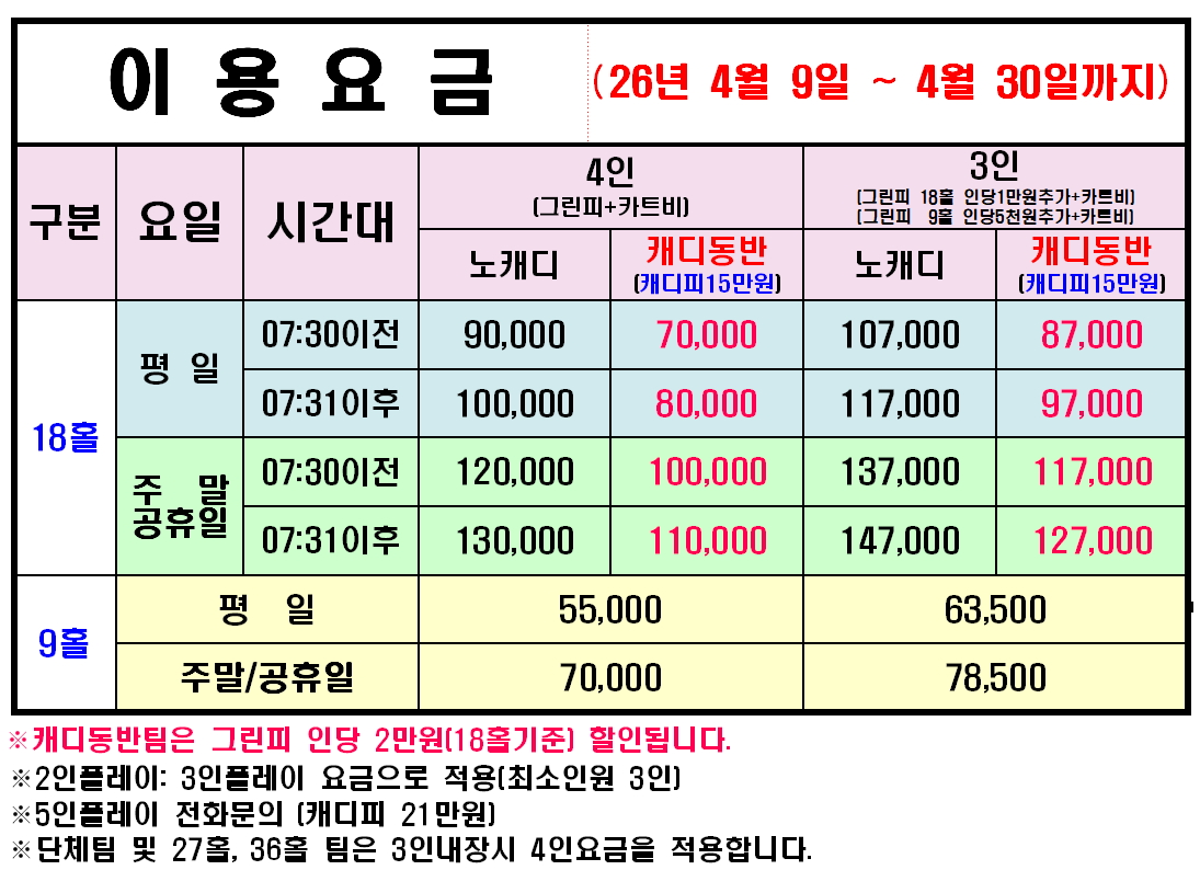 ※ 시간대 할인이벤트 요금 안내(4월9일~30일까지)