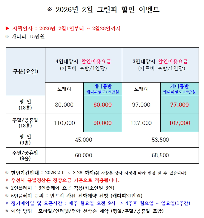 ※ 2026년 2월 그린피 할인 이벤트 안내