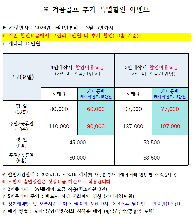 ※ 겨울골프 그린피 추가할인 이벤트 안내(2026.1.1~2.15까지)