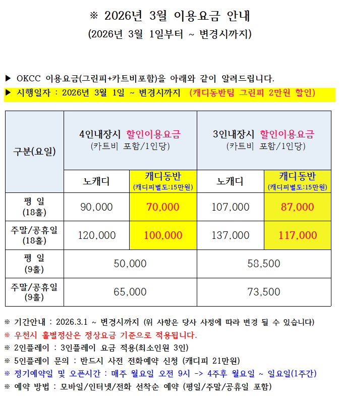※ 2026년 3월 이용요금 안내